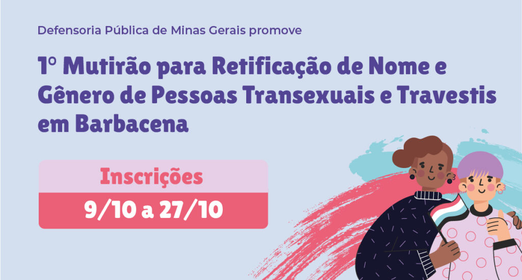 A Defensoria Pública de Minas Gerais (DPMG) realizará o I Mutirão para Retificação de Nome e Gênero de Pessoas Transexuais e Travestis de Barbacena.
