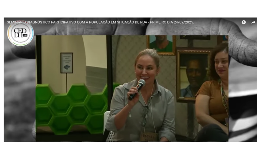 Nos dias 24 e 25 de setembro, a defensora Rachel Aparecida de Aguiar Passos participou do seminário “Diagnóstico Participativo com a População em Situação de Rua”, realizado pelo Centro de Defesa dos Direitos Humanos de Minas Gerais (CEDDH/MG), onde foi apresentado o Diagnóstico Participativo de Governador Valadares, Montes Claros, Uberlândia e Belo Horizonte (região da Lagoinha).