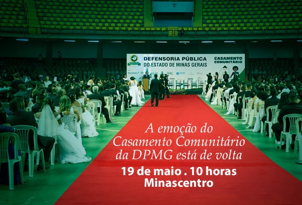 O tradicional Casamento Comunitário da Defensoria Pública de Minas, em Belo Horizonte, será realizado no dia 19 de maio, no Minascentro, a partir das 10 horas, em uma grande festa da cidadania. O evento, que chega à sua quinta edição na capital, faz parte do calendário oficial da Instituição e também integra a programação da Semana da Defensoria Pública 2022.