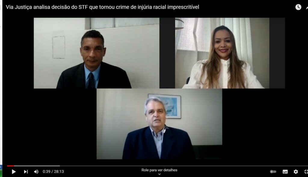 Na oportunidade, foi debatida a decisão do Supremo Tribunal Federal (STF) que torna o crime de injúria racial imprescritível, equiparando-o ao racismo. Foi abordada, ainda, a importância da decisão no combate ao racismo no Brasil.