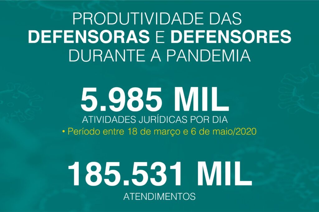 Desde que o atendimento remoto foi implantado, por medida de segurança e seguindo recomendações das autoridades sanitárias, todo o efetivo de defensoras e defensores públicos atua simultaneamente fazendo uso de tecnologias como videochamadas, whatsapp, email, telefone, podcast com interatividade com os assistidos e outros, sem prejuízo ao andamento dos trabalhos.