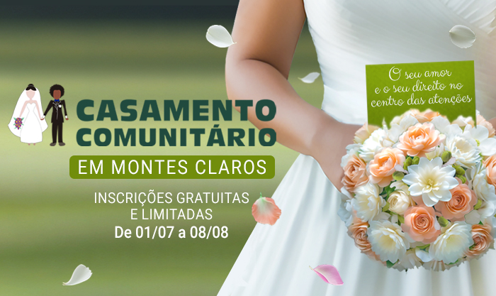 A Defensoria Pública de Minas Gerais (DPMG) irá realizar mais uma edição do Casamento Comunitário, desta vez, na Unidade de Montes Claros. A cerimônia será no dia 20 de setembro no campus universitário da Universidade Estadual de Montes Claros (Unimontes).