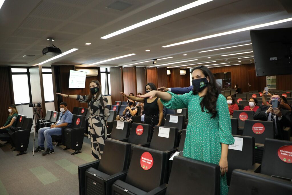 Após a leitura do compromisso de posse pelo empossando, os integrantes do Conselho Superior saudaram as novas membras e membros da Instituição, desejando sucesso na trajetória defensorial.