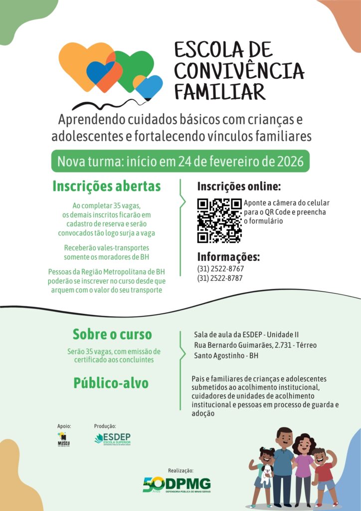 Defensoria Pública de Minas Gerais abre inscrições para nova edição da capacitação Escola de Convivência Familiar