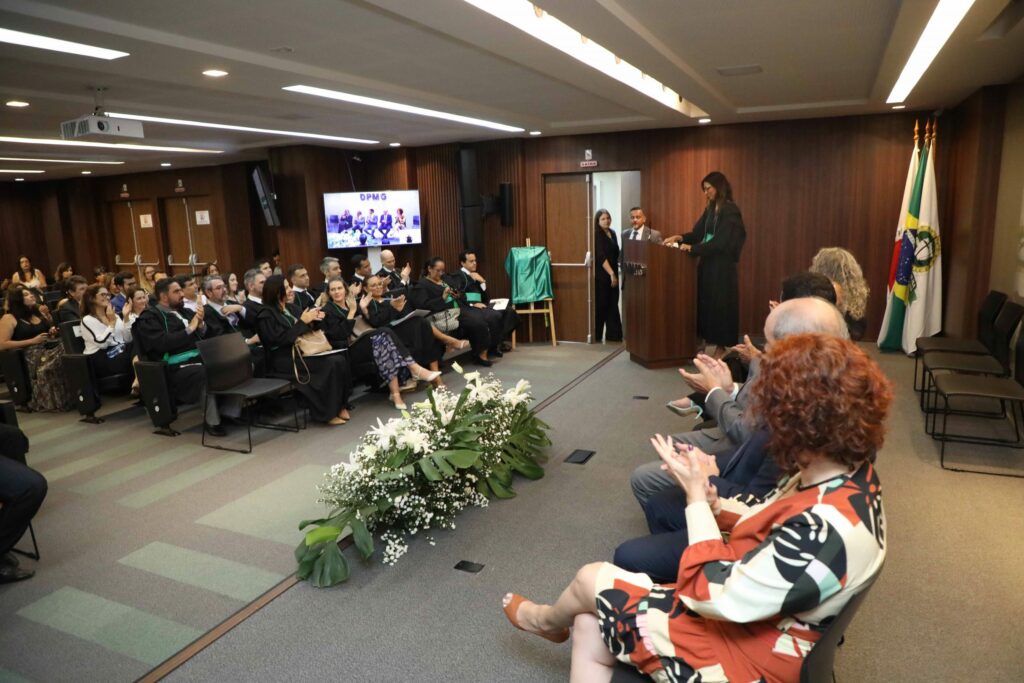 No segundo momento da solenidade e com o dispositivo de honra composto pelas conselheiras e conselheiros que estavam encerrando o biênio, foi eternizado o reconhecimento da Instituição ao ex-defensor público-geral Varlen Vidal, que dirigiu a DPMG no período de maio a setembro de 2008.