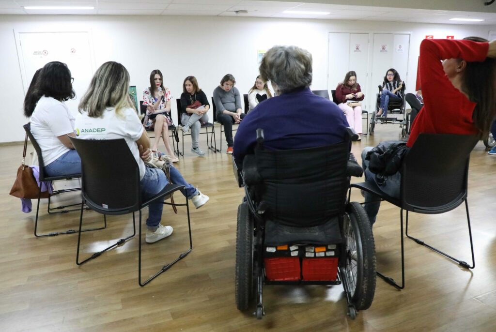 Como estratégia de condução dos trabalhos, duas rodas de conversa foram montadas no segundo andar da Unidade I da DPMG: no foyer, mulheres com deficiência. No auditório, mães e familiares delas.