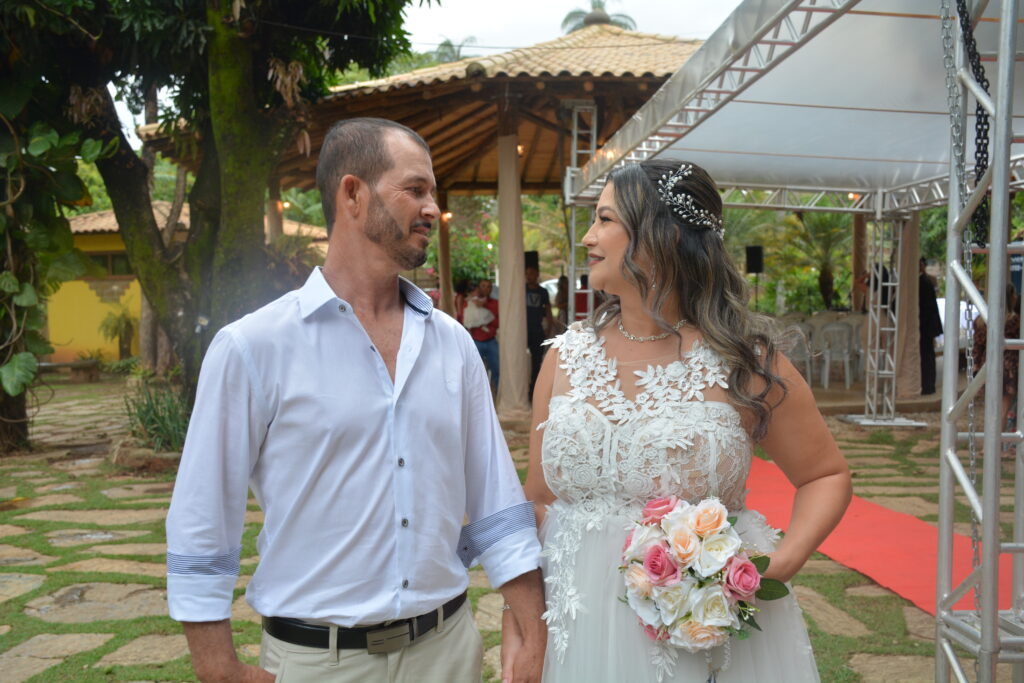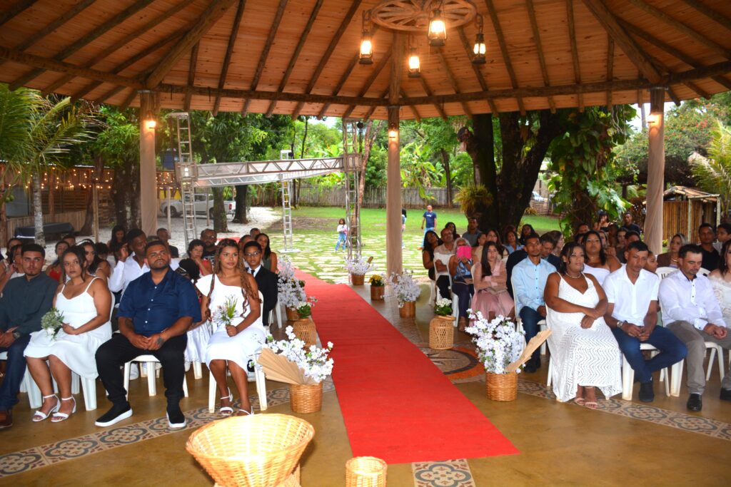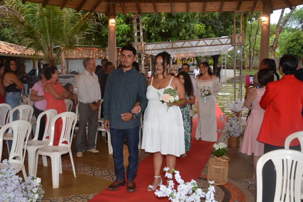 Com o apoio de parceiros, a cerimônia contou com todos os detalhes tradicionais: marcha nupcial, tapete vermelho, troca de alianças e benção ecumênica para o tão desejado “sim”.