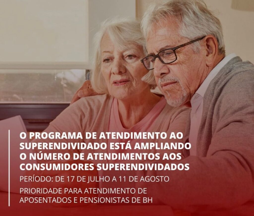 A Defensoria Pública de Minas Gerais (DPMG), por meio da Defensoria Especializada do Consumidor, o Ministério Público, Tribunal de Justiça e a Faculdade Milton Campos promovem, até o dia 11 de agosto, uma quantidade maior de atendimentos aos consumidores superendividados, prioritariamente aposentados e pensionistas, residentes em Belo Horizonte. A iniciativa faz parte do “Programa de Atendimento ao Superendividado” (PAS), realizado pelo Procon-BH.