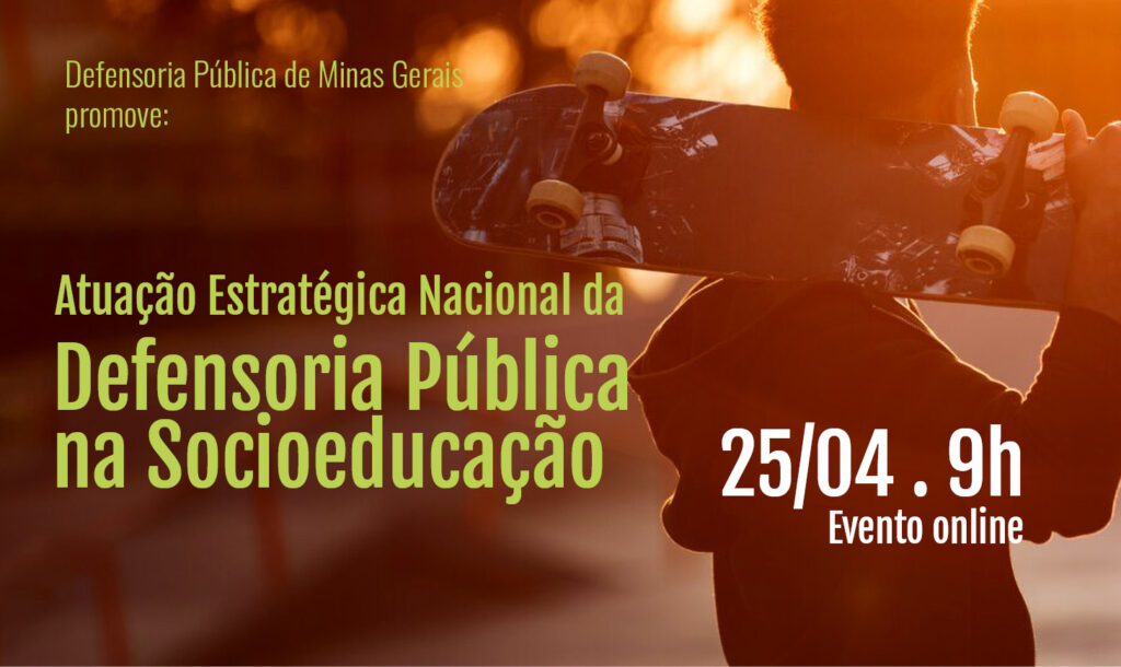 A Defensoria Pública de Minas Gerais (DPMG), por meio da sua Escola Superior (ESDEP), promove no dia 25 de abril, a partir das 9h, o evento online “Atuação Estratégica Nacional da Defensoria Pública na Socioeducação”. Ele será transmitido pela plataforma Microsoft Teams.