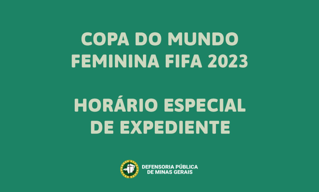 Conforme a Resolução nº 1890/2023, nos dias úteis em que estão previstos jogos da Seleção Brasileira de Futebol Feminino na Copa do Mundo FIFA 2023, o funcionamento da Defensoria Pública do Estado de Minas Gerais, para expediente interno e atendimento ao público será alterado, conforme abaixo.