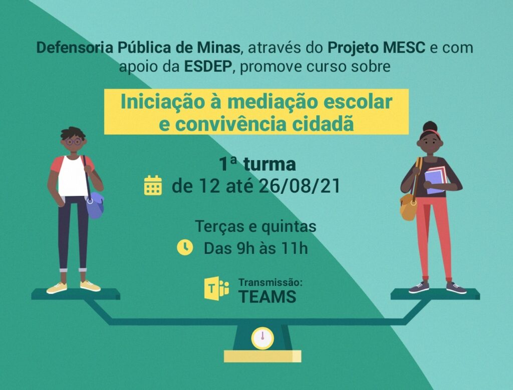 O projeto Mesc – Mediação de Conflitos no Ambiente Escolar, desenvolvido pela Defensoria Pública de Minas Gerais (DPMG), realiza o “Curso de Formação para as Superintendências Regionais de Ensino e analistas do Órgão Central”.