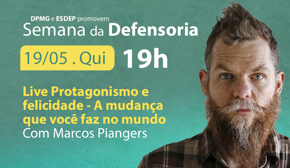 A Defensoria Pública de Minas Gerais (DPMG), por meio de sua Escola Superior (Esdep) e com o apoio da Coordenadoria de Projetos, Convênios e Parcerias (CooProC), realizará nesta quinta-feira (19/5), às 19 horas, uma live com o tema “Protagonismo e felicidade – a mudança que você faz no mundo”.