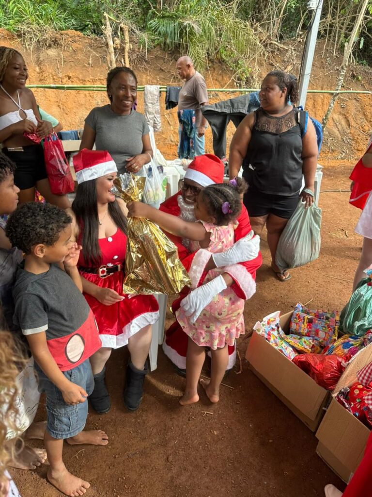 As crianças também foram protagonistas da ação, interagindo com o Papai Noel e recebendo os brinquedos em um momento de alegria e confraternização.