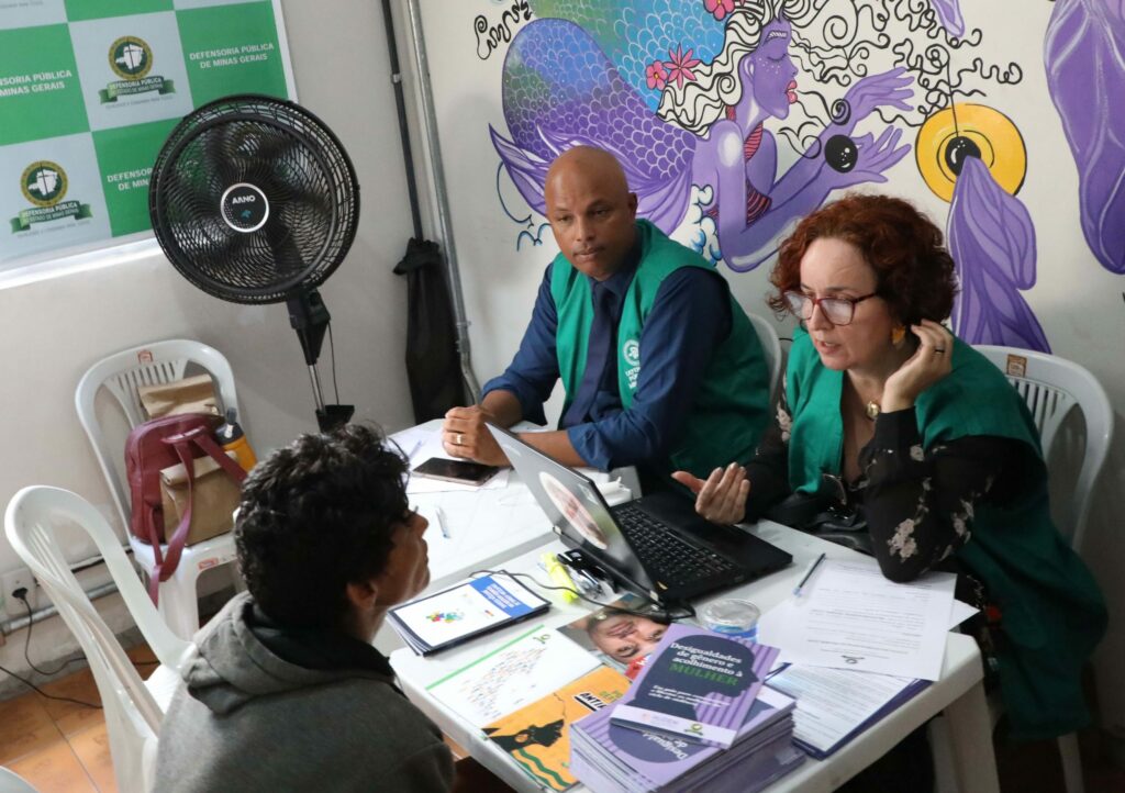 Os atendimentos realizados pela DPMG foram conduzidos pela defensora pública Júnia Roman Carvalho e pelo defensor público Vladimir de Souza Rodrigues, ambos em atuação na Defensoria Especializada dos Direitos Humanos, Coletivos e Socioambientais. Foram oferecidas orientações jurídicas e educação em direitos, além de outros serviços disponibilizados por instituições parceiras.
