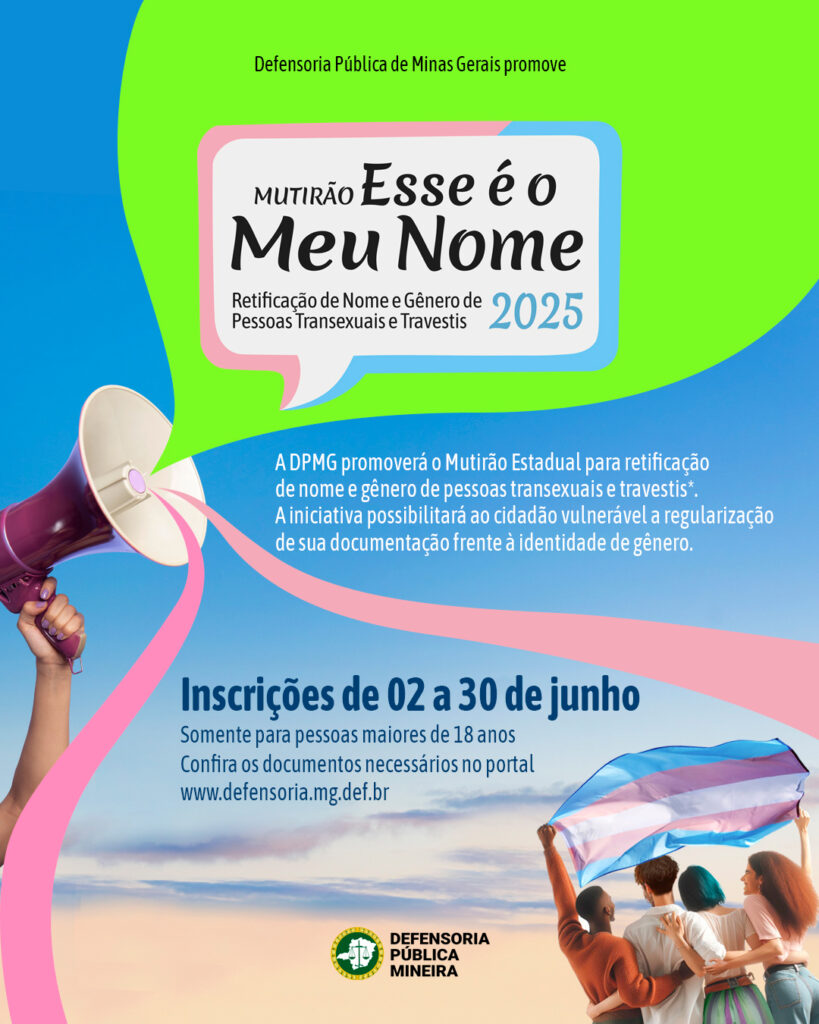 A Defensoria Pública de Minas Gerais (DPMG) vai promover mais uma edição do Mutirão “Esse é o Meu Nome”. Neste ano, os serviços serão oferecidos em 19 Unidades da DPMG.