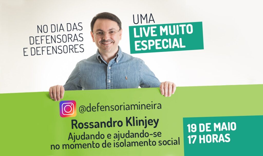 Para marcar o Dia Nacional da Defensoria Pública, celebrado anualmente em 19 de maio, a Defensoria Pública de Minas Gerais (DPMG) vai promover uma palestra virtual ministrada pelo escritor e psicólogo clínico Rossandro Klinjey. Ele abordará questões envolvendo cuidado e autocuidado nestes tempos de distanciamento social.