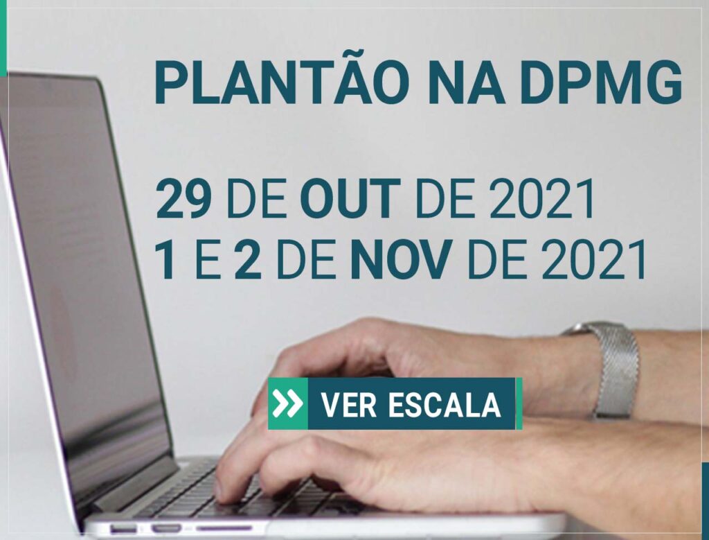 De acordo com as Resoluções nº 251/2021 e nº 343/2021, publicadas no Diário Oficial de Minas Gerais nos dias 2/7/2021 e 7/10/2021, não haverá expediente no âmbito da Defensoria Pública do Estado de Minas Gerais nos dias 29 de outubro, data em que será comemorado o Dia do Funcionário Público, e 1º e 2 de novembro (Dia de Finados).