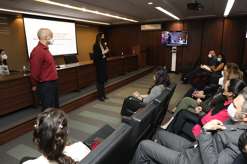 A Assessoria Técnica da Presidência da Fundação João Pinheiro (FJP) apresentou nesta segunda-feira (20/6) o diagnóstico de ambiente para a construção do Planejamento Estratégico 2023-2025 da Defensoria Pública de Minas Gerais (DPMG). A apresentação foi feita por Mauro César da Silveira, Tamires Maia e Stephanie Sousa, representantes da FJP.