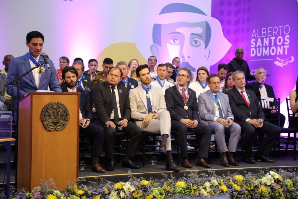 Em seu discurso, o governador de Minas Gerais, Romeu Zema, falou sobre a genialidade do Pai da Aviação para reconhecer a importância do trabalho desenvolvido pelos mineiros e pelos homenageados na solenidade. “A Medalha que entregamos carrega o nome de um mineiro que não se contentava com pouco. Em típico mineiro visionário que trabalhou discretamente para surpreender o mundo. Santos Dumont ousou ir além do que sua época julgava possível. Estamos homenageando aqui 130 personalidades que representam a força e a diversidade dos batalhadores mineiros. Essa homenagem é uma engrenagem do motor que faz Minas decolar”, completou o governador.