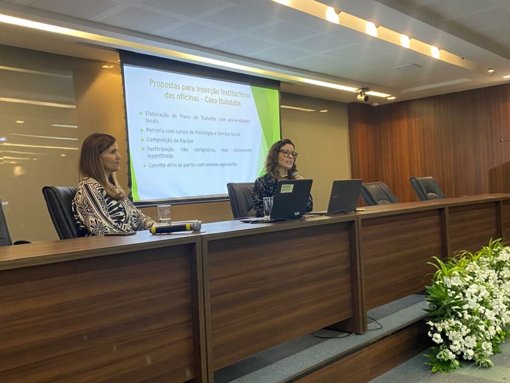 A defensora pública Mônica Alves da Costa, coordenadora local em Ituiutaba, apresentou como as oficinas de parentalidade, que auxiliam as famílias a lidarem com os conflitos e com a reconfiguração familiar de forma educativa, foram inseridas de forma institucional na rotina de atendimento da Unidade.