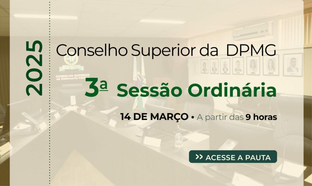 No dia 14 de março (sexta-feira), a partir das 9 horas, as membras e membros do Conselho Superior da Defensoria Pública do Estado de Minas Gerais reunir-se-ão para realizar a 3ª sessão ordinária do ano de 2025.