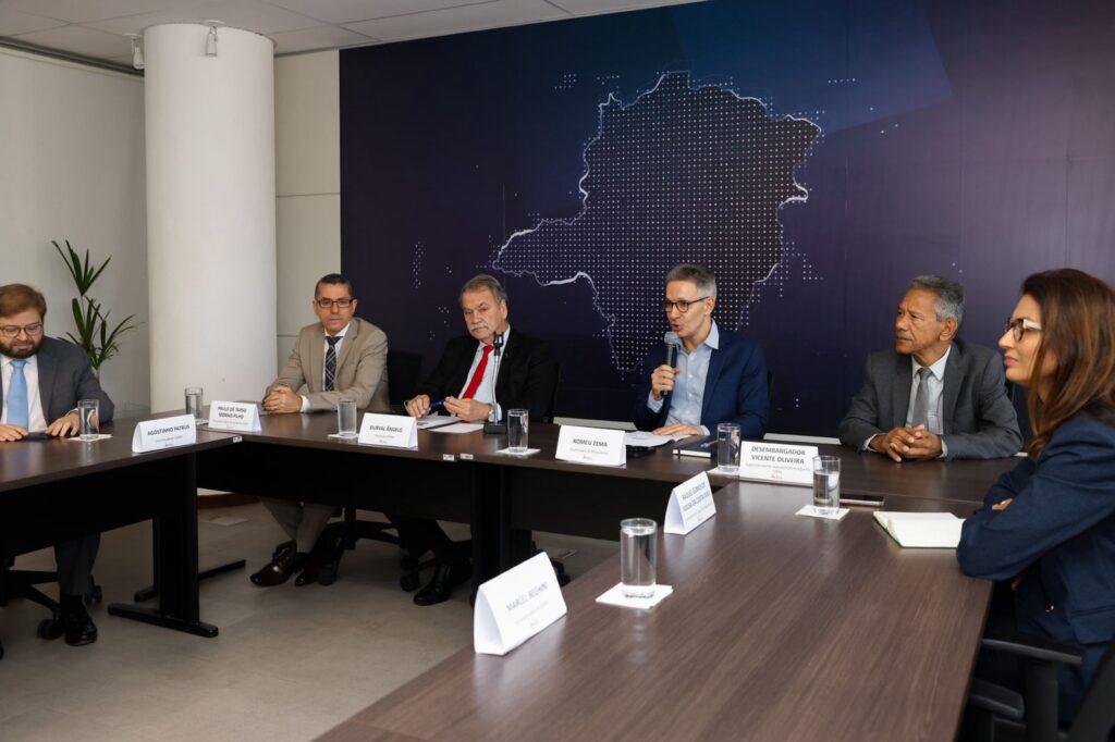 O encontro aconteceu no Tribunal de Contas do Estado (TCE), com a participação dos secretários de Governo, Marcelo Aro; Geral, Marcel Beghini; da Fazenda, Luiz Cláudio Fernandes; e de Planejamento e Gestão, Silvia Listgarten; do advogado-geral do Estado, Sergio Pessoa de Paula Castro; subsecretário de Planejamento e Orçamento/SEPLAG, Felipe Magno Parreira de Sousa; do presidente do Tribunal de Justiça, desembargador Luiz Carlos de Azevedo Corrêa Junior; do presidente do TCE, Durval Ângelo Andrade; do procurador-geral de Justiça, Paulo de Tarso Morais Filho; e do presidente da Assembleia Legislativa, deputado Luiz Tadeu Martins Leite.