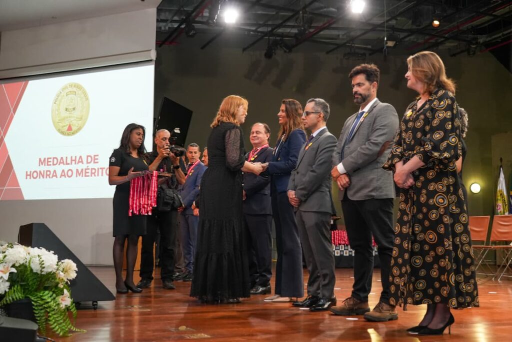 A defensora pública-geral do Estado, Raquel Gomes de Sousa da Costa Dias, foi agraciada com a Medalha de Honra ao Mérito da Polícia Civil de Minas Gerais (PCMG). A cerimônia ocorreu na segunda-feira (03/11) no Auditório JK, na Cidade Administrativa, em Belo Horizonte, e contou com a presença do governador Romeu Zema.
