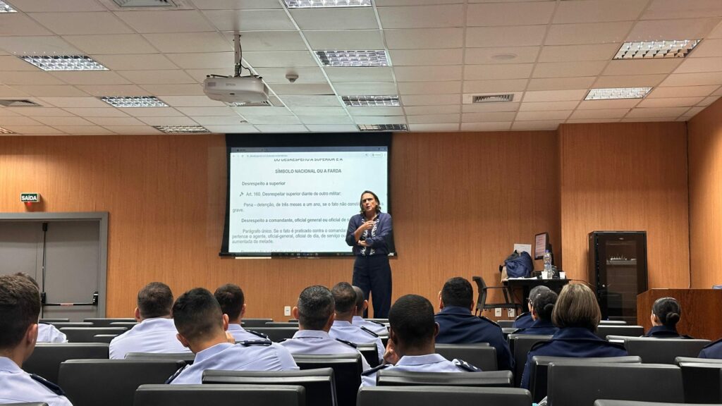 Defensora pública ministra aula para alunos do Curso de Polícia Judiciária Militar do Comando da Aeronáutica