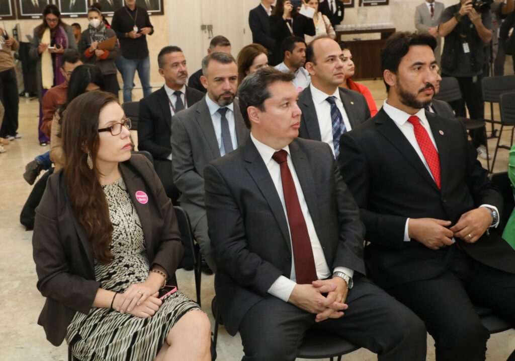Aditivo – A defensora pública-geral do Estado, Raquel Gomes de Sousa da Costa Dias, foi representada pela defensora pública-auxiliar Emília Eunilce Alcaraz Castilho, na cerimônia que formalizou a parceria entre a Assembleia Legislativa de Minas Gerais e o Tribunal Regional Eleitoral do Estado, com foco no enfrentamento da desinformação relacionada às eleições municipais de 2024.