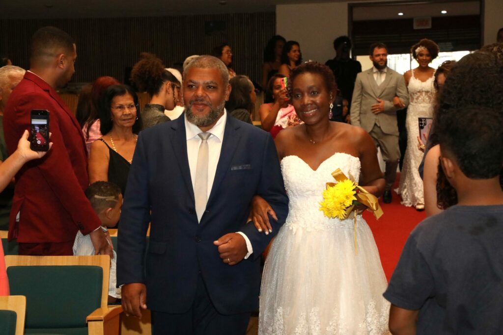 Um dos casais representou os demais e, em um ato simbólico, recebeu a certidão de casamento entregue pela juíza de Paz substituta Renata Angélica Zerlotini Sena; pela oficiala do Cartório da Cidadania de Nova Lima, Silva Maria Linhares de Almeida; pela chefe de Gabinete da DPMG, defensora pública Caroline Loureiro Goulart Teixeira; e pela defensora pública Izabela de Rezende Coutinho, coordenadora na Unidade de Nova Lima.