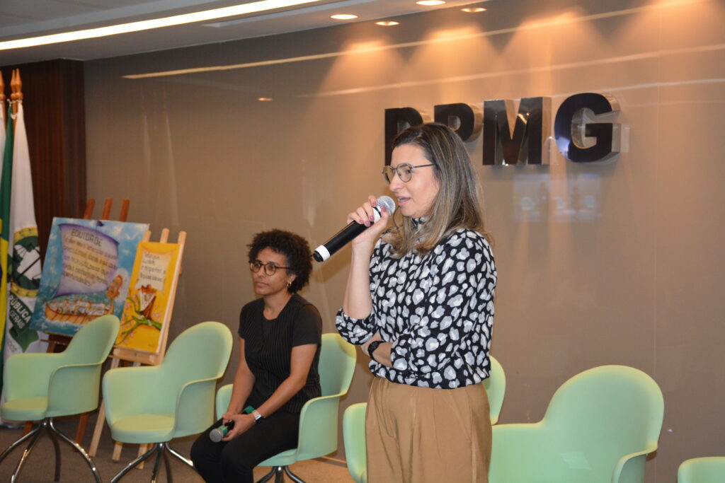 Complementando a apresentação do projeto, a analista psicóloga do Setor Psicossocial da DPMG, Jéssica Fernanda Rodrigues Lima, explicou o formato das oficinas, que abordam a educação em direitos em uma perspectiva multidisciplinar. A intenção é que os grupos tenham acesso a informações, reflitam e tenham voz ativa em suas questões cotidianas.
